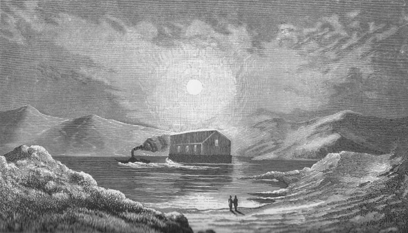In July 1846, the steamer Conqueror towed the floating church up the River Clyde to Loch Sunart. Enthralled villagers gawked from housetops and waved handkerchiefs as though celebrating a victory in war. The obvious place to deploy this new dreadnought was underneath the windows of Sir James’s coastal mansion—but they decided not to risk provoking Sir James more than necessary. Instead, the floating church was moored about a mile from Strontian, a hundred and fifty yards offshore.