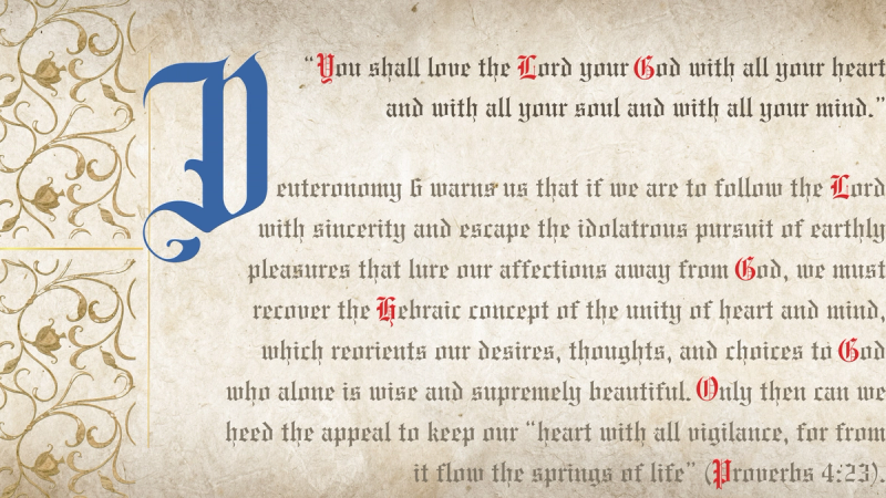 In biblical language, the intellect and the emotions are inseparable. Hence, for both the New and Old Testaments, we cannot properly love God with what we call our hearts without loving him with what we call our minds. Neither can we appropriately love the Lord with our minds without the affections that guide our choices. Deuteronomy 6 warns us that if we are to follow the Lord with sincerity and escape the idolatrous pursuit of earthly pleasures that lure our affections away from God, we must recover the Hebraic concept of the unity of heart and mind, which reorients our desires, thoughts, and choices to God who alone is wise and supremely beautiful. Only then can we heed the appeal to keep our “heart with all vigilance, for from it flow the springs of life” (Prov. 4:23).