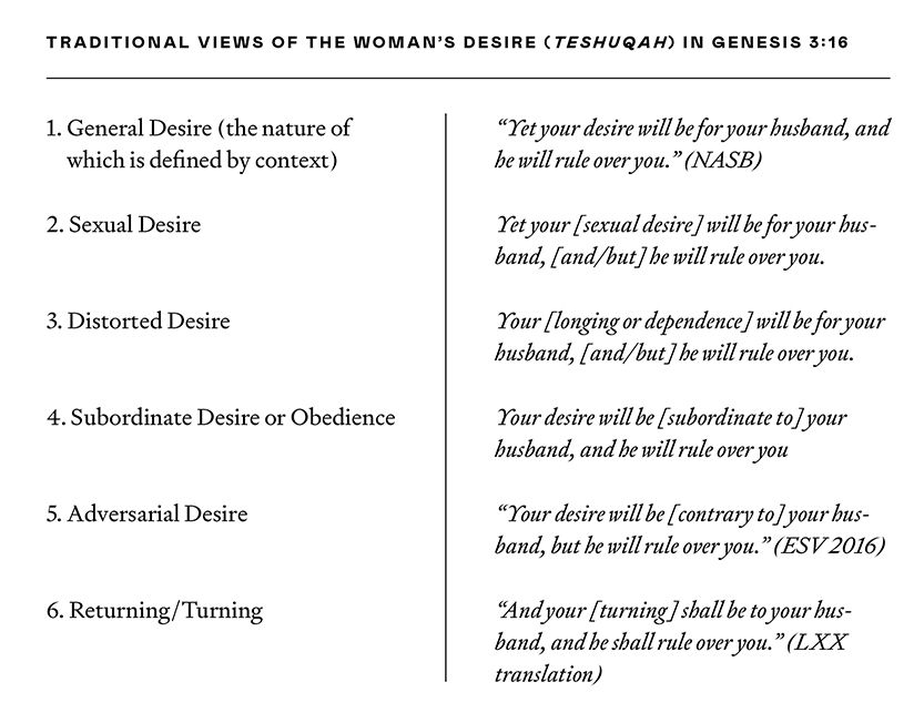 10. For a fuller explanation and analysis of each of these traditional views, etymology, and Foh’s interpretation of Genesis 3:16, see my unpublished paper “The Woman’s Desire as Gracious Continuity: An Analysis of Susan Foh’s Interpretation of Genesis 3:16 and an Alternate Proposal,” April 2021, https://www.academia.edu/s/2cb27b2d4f?source=link.